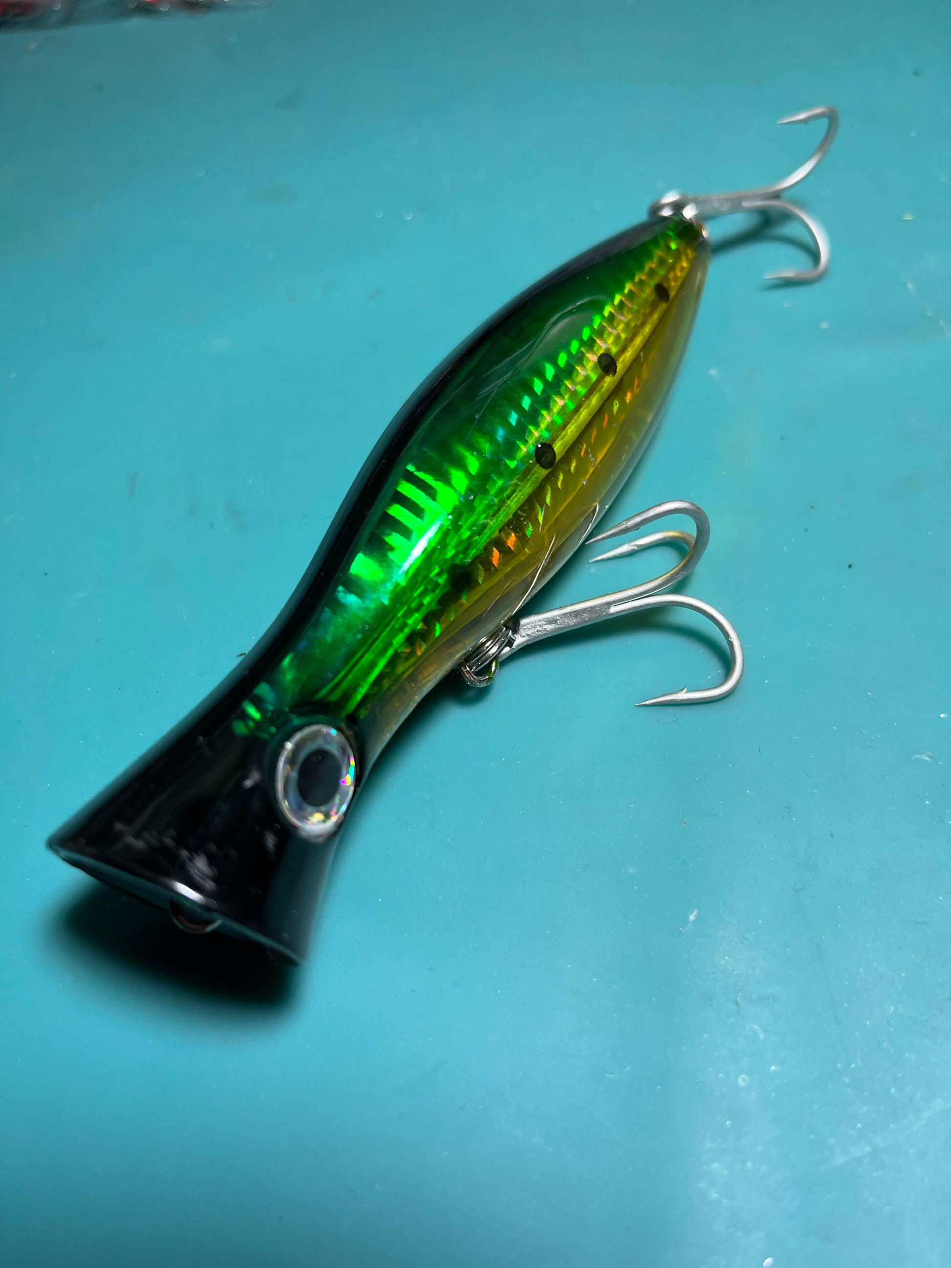 The 6 Pack of 5” Topwater Popper Lure by Jackpot Tackle is a versatile and effective bait for a variety of fish species, including Giant Trevally (GT), Tuna, Striped Bass, Kingfish, and more. The multicolor design and positive buoyancy make it attractive to a wide range of freshwater and saltwater fish. With a set of 6 lures included in the pack, anglers have plenty of options for their next fishing adventure